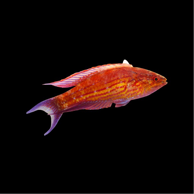 The Royal Flasher Wrasse is a very peaceful and active fish that will bring both color and movement to a fish-only or reef aquarium. A well-filtered established marine aquarium, 55 gallons in size or larger that is generously aquascaped with rockwork provides an excellent home. The Royal Flasher Wrasse will not bother any corals or invertebrates making it the perfect fish for the reef aquarium. Typically, a single male Royal Flasher Wrasse can be kept with a group of females that is introduced prior to or at the same time as the male. Similar to other flasher wrasses, the Royal Flasher Wrasse likes to jump, so a tight fitting canopy is essential.